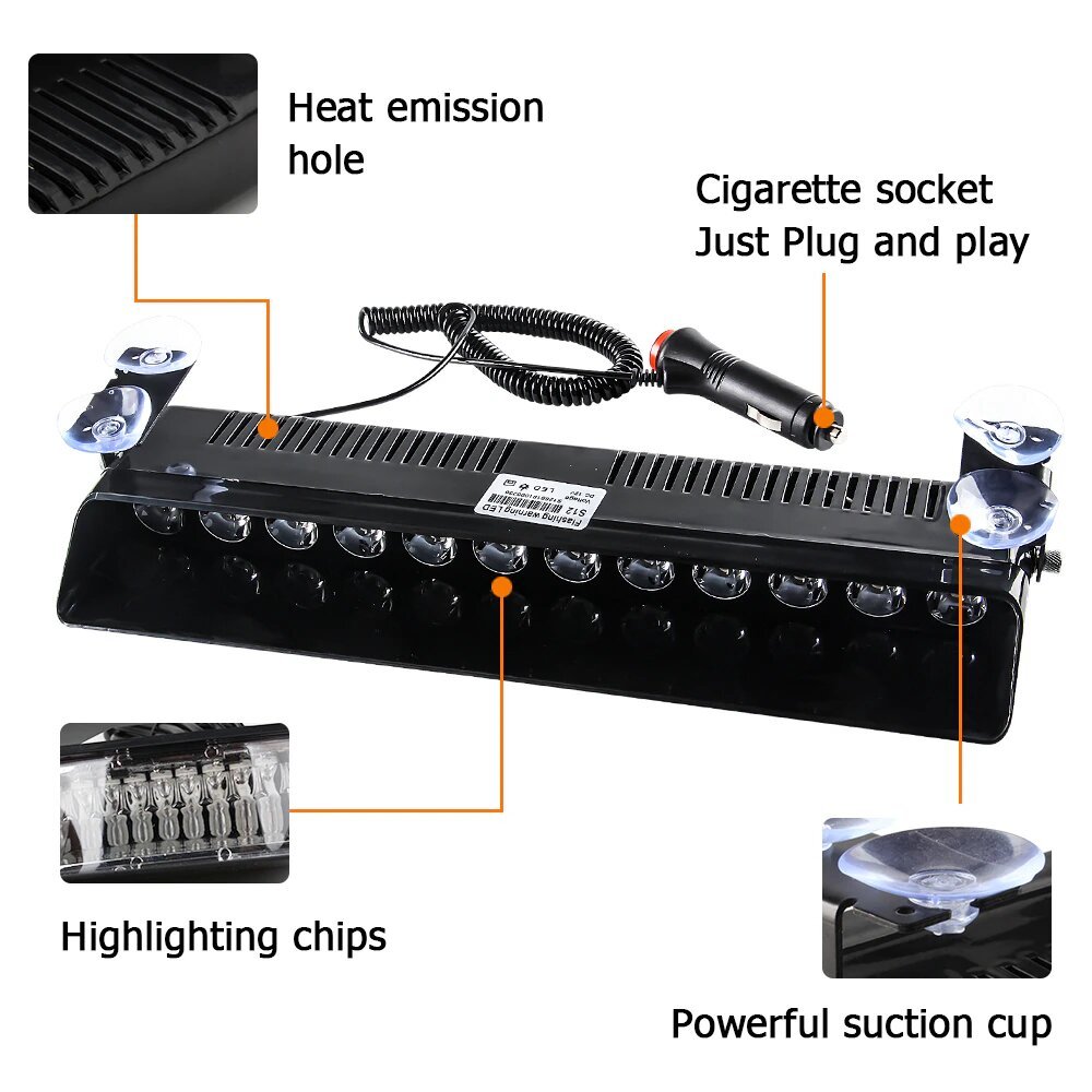 Внутрішньосалонний червоно-синій стробоскоп складається з 12 потужних світлодіодів з лінзами, а тому він світить яскравіше за звичайні стробоскопи і добре видно вдень.